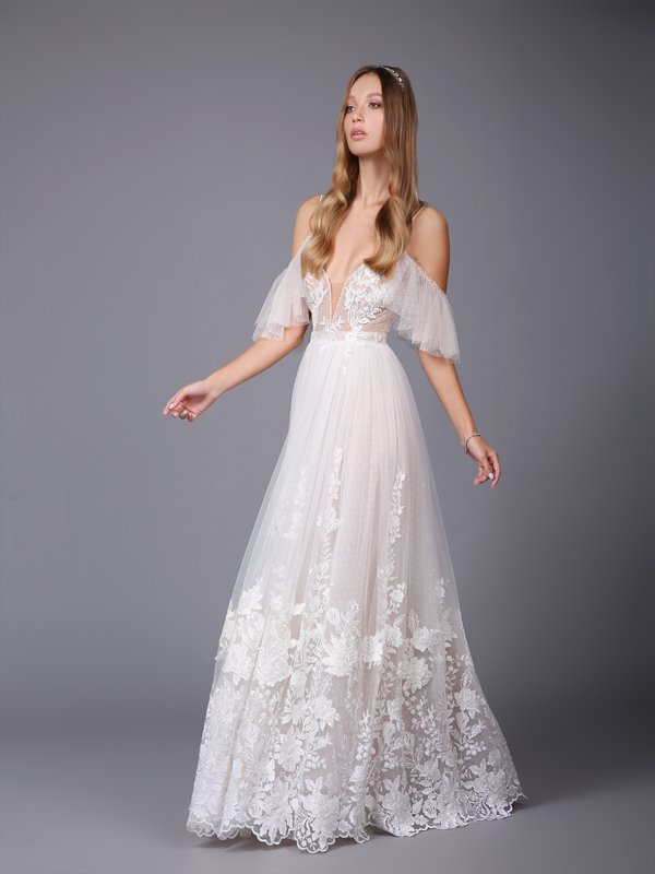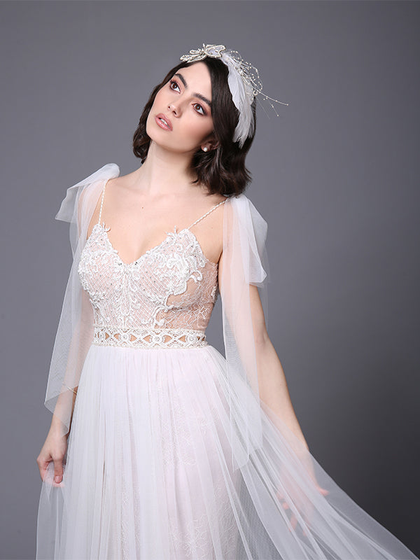 LEYLA – Romantic wedding dress. V-neck wedding dress. Backless bridal gown.