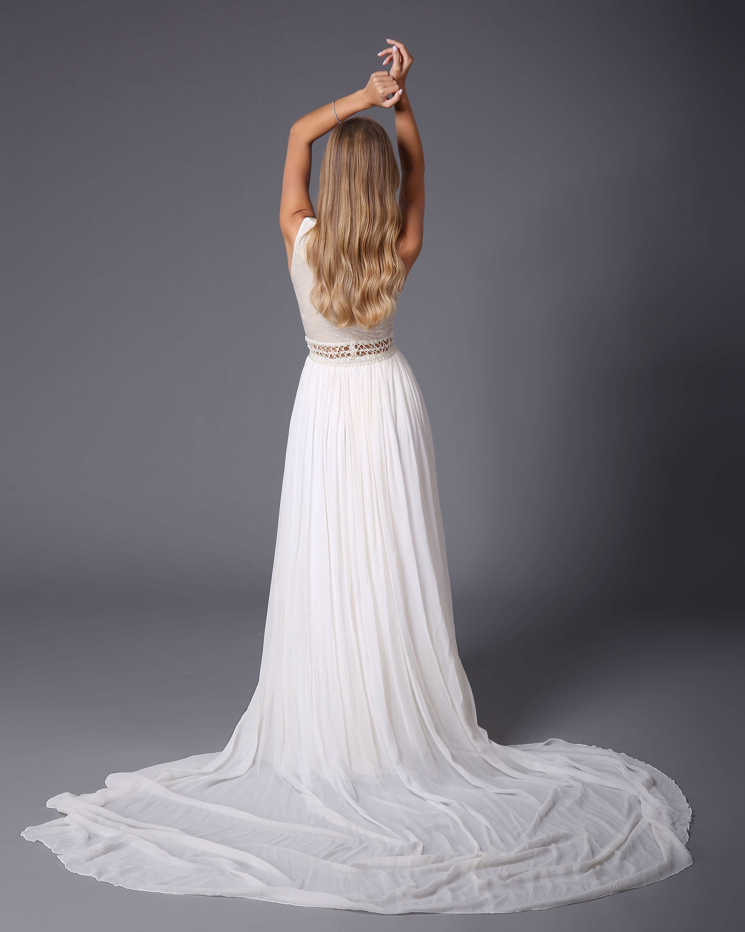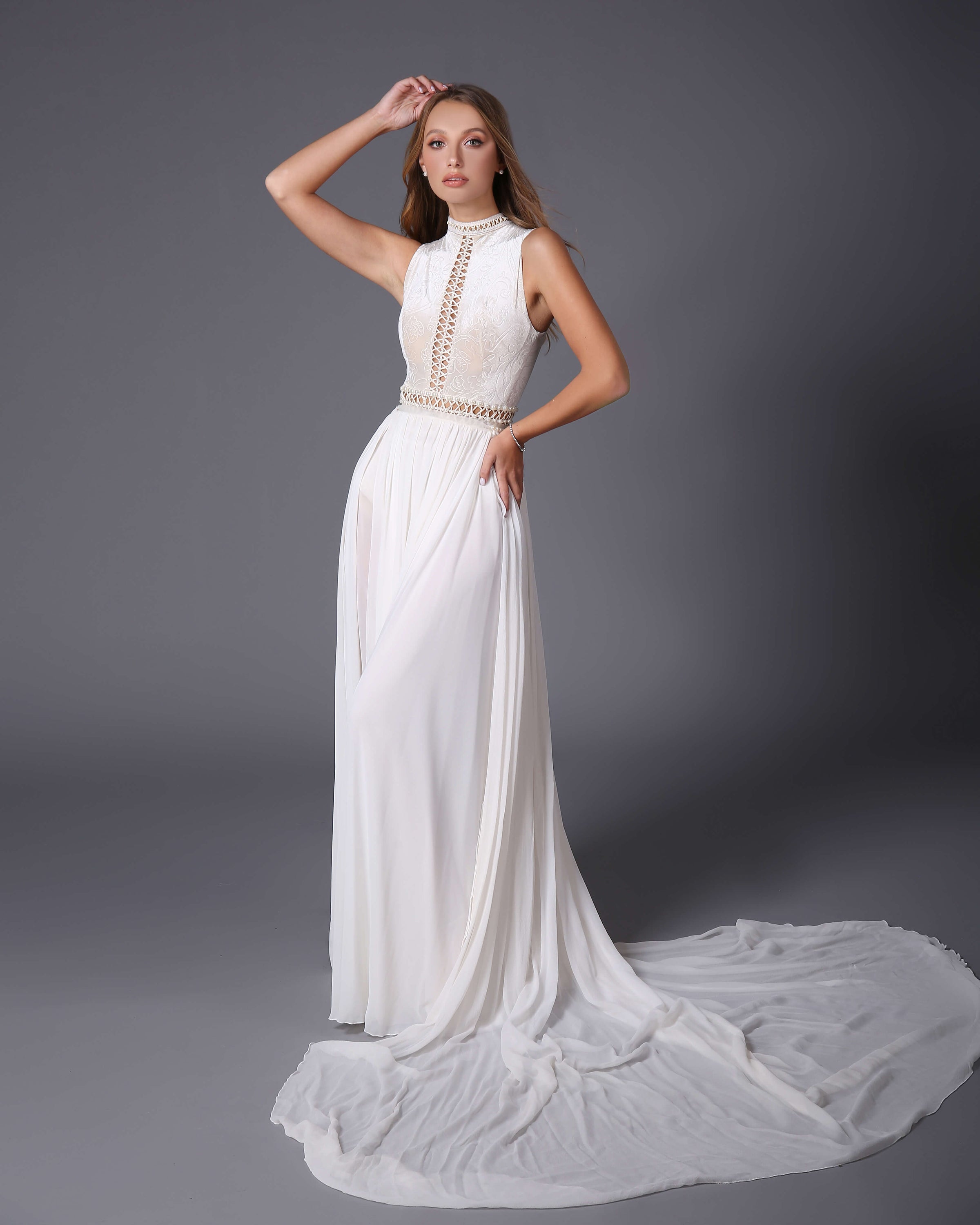 VALERY – High-neck wedding dress with train.