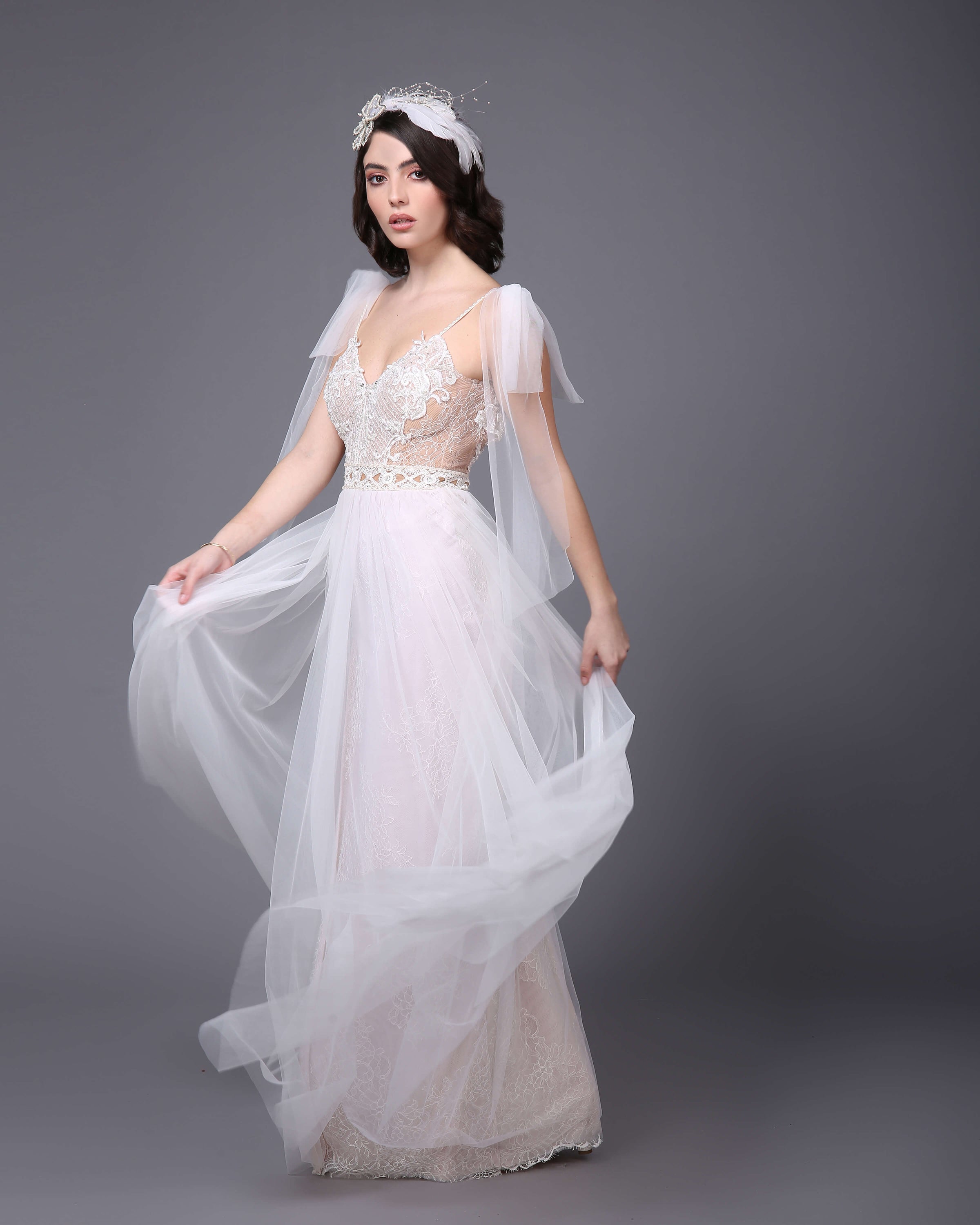 Materials: Lace, Silk tulle, chiffon, application lace